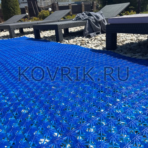 - в местах активного перемещения людей для обеспечения безопасности за счет противоскользящего эффекта покрытия: около уличных и внутренних бассейнов, в саунах, банях, в зоне летней кухни;